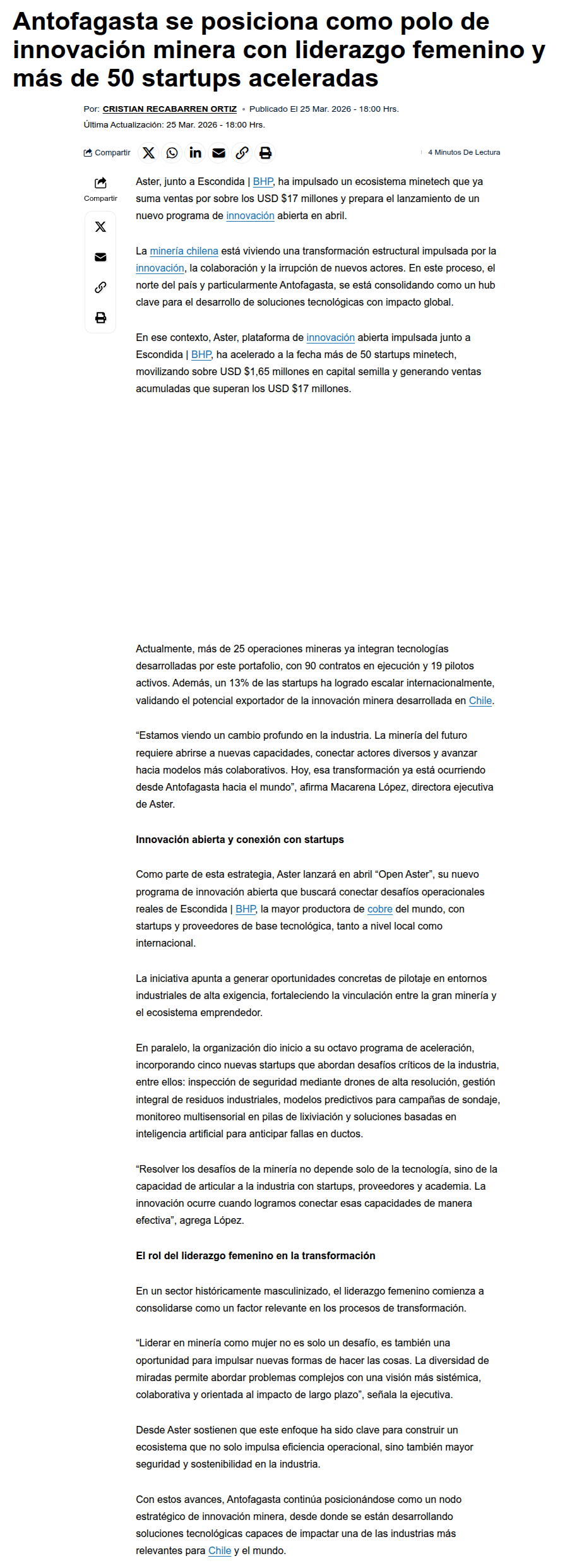 Antofagasta se posiciona como polo de innovación minera con liderazgo femenino y más de 50 startups aceleradas - (guiaminera.cl)
