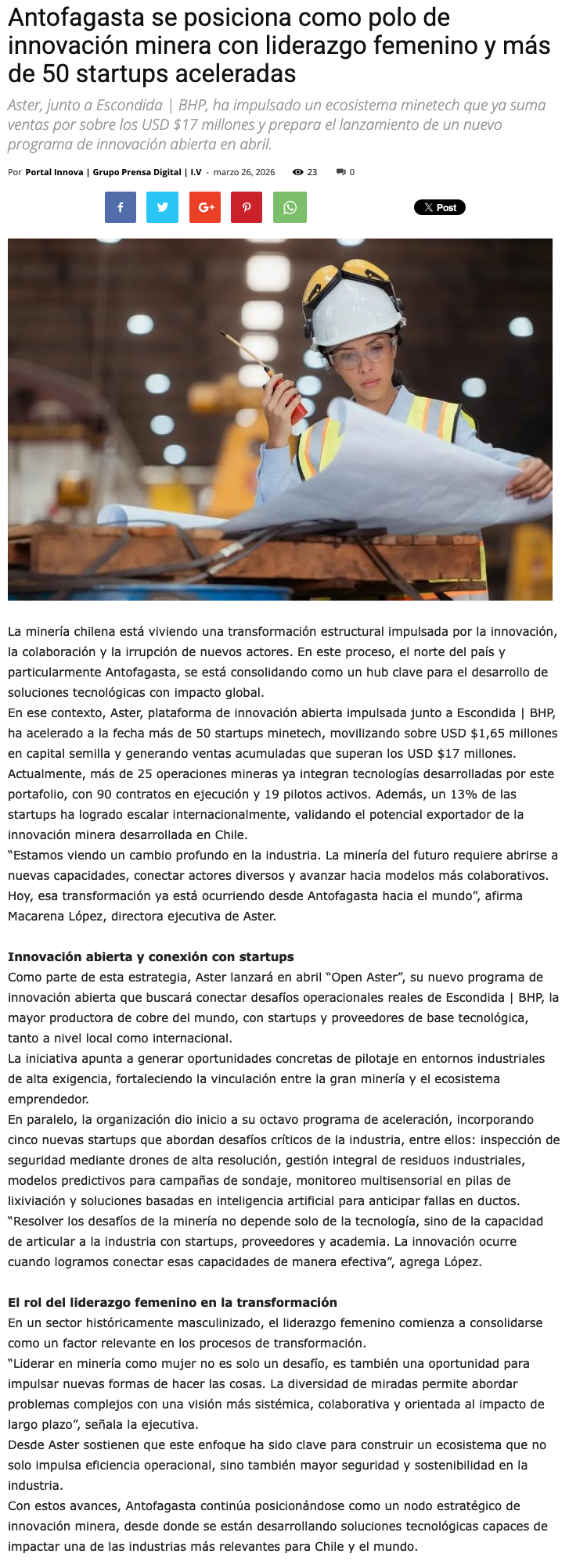 Antofagasta se consolida como polo de innovación minera con liderazgo femenino y más de 50 startups aceleradas - (reporteminero)
