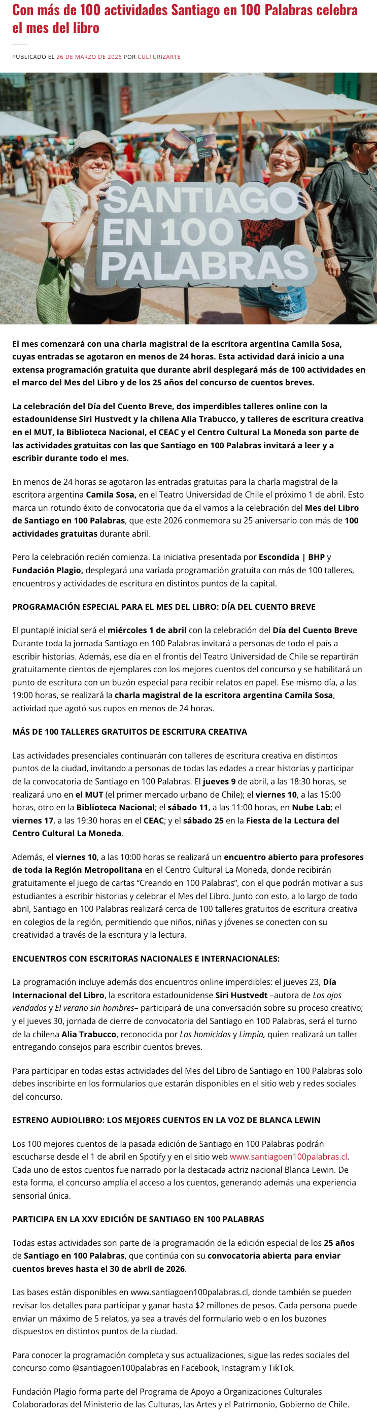 Con más de 100 actividades: Santiago en 100 palabras celebra el mes del libro - (lahora.cl)