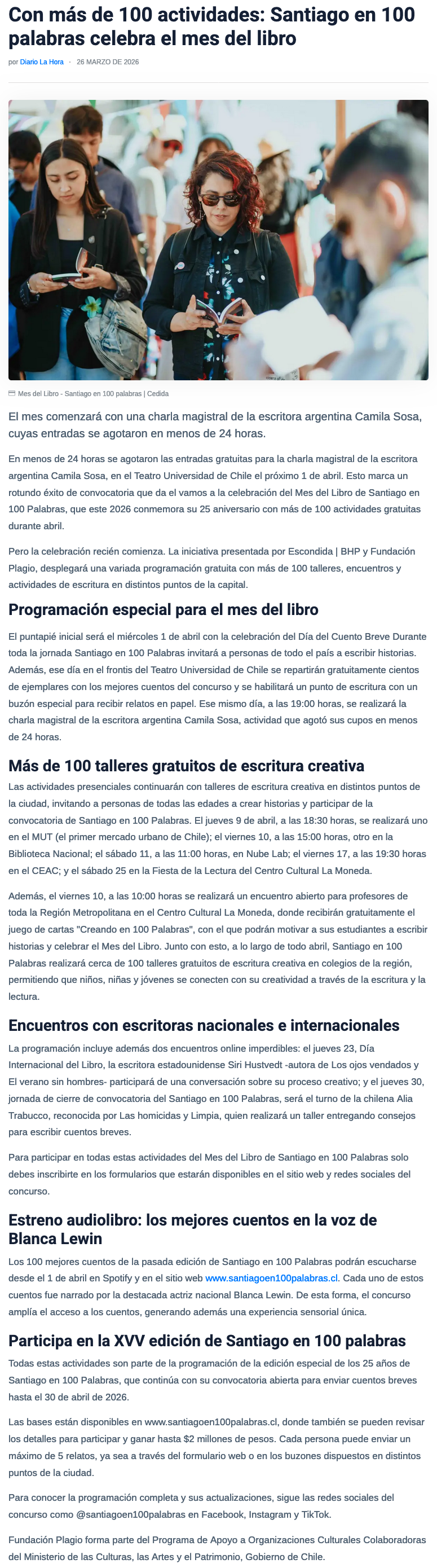 Con más de 100 actividades Santiago en 100 Palabras celebra el mes del libro - (culturizarte.cl)