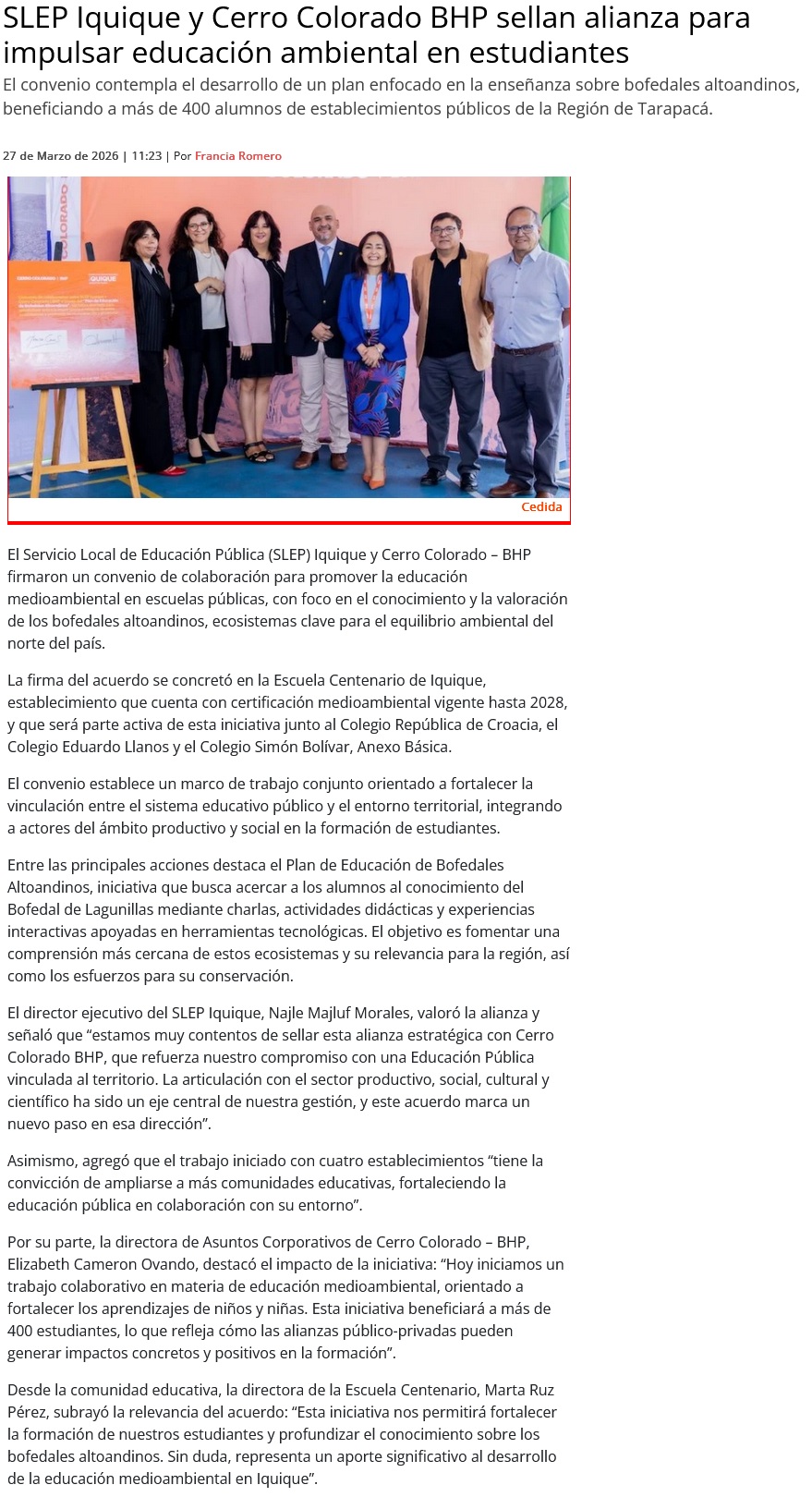 Firman convenio para fortalecer la educación medioambiental - (El Longino de Alto Hospicio)