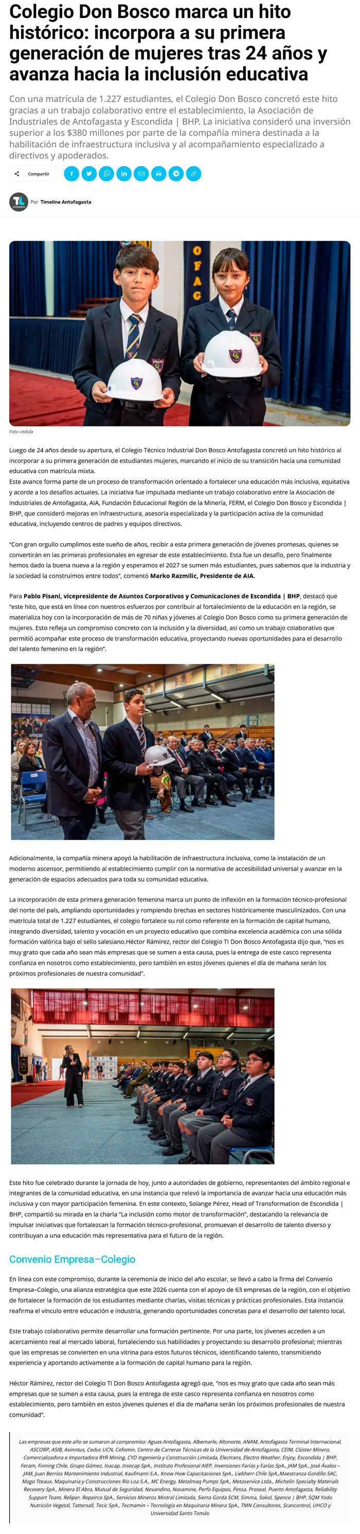 Colegio Don Bosco Antofagasta recibe a su primera generación de niñas y refuerza la formación técnica regional - (reporteminero)
