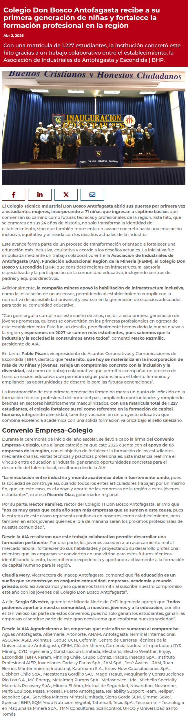 Colegio Don Bosco Antofagasta recibe a su primera generación de niñas y fortalece formación profesional en la región - (guiaminera.cl)
