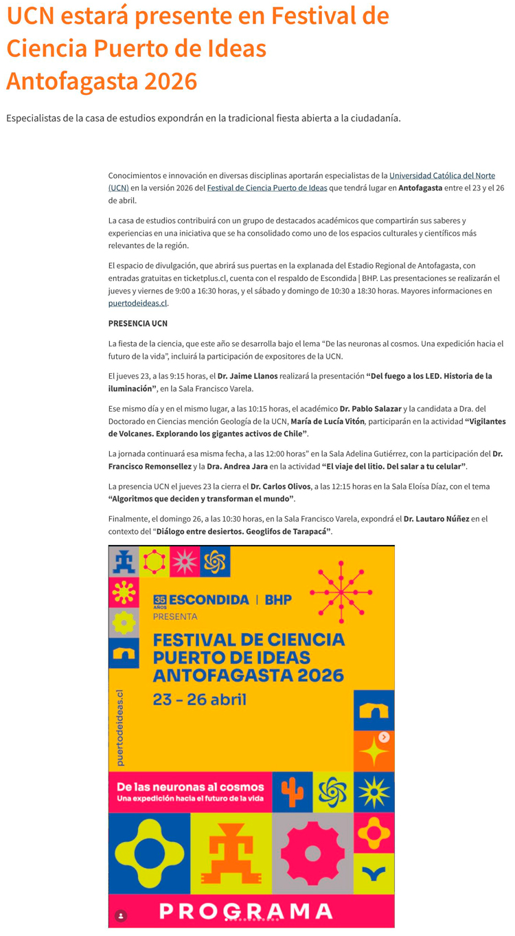 Puerto de Ideas Antofagasta 2026: Más de 100 actividades gratuitas para explorar «de las neuronas al cosmos» - (madero.cl)