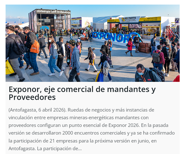 Mineras presentarán sus Centros de Negocios en Exponor 2026 - (mch.cl)
