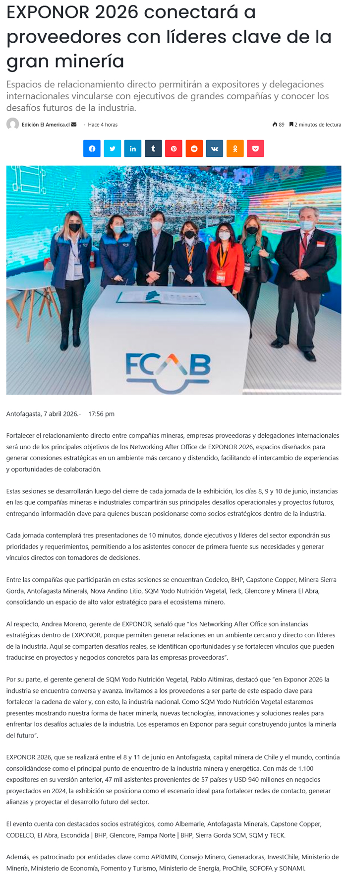 Exponor 2026 conectará a proveedores con líderes clave de la gran minería - (soyantofagasta)