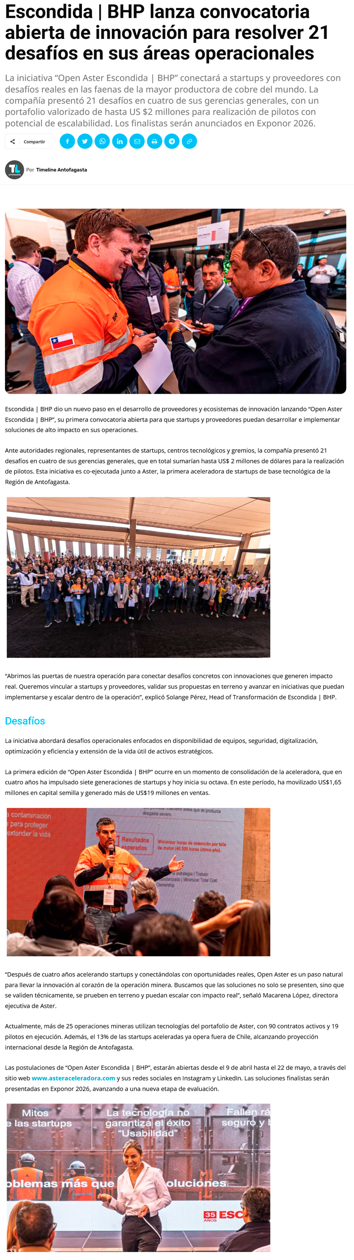 Escondida | BHP lanza convocatoria abierta de innovación para resolver 21 desafíos en sus áreas operacionales - (antofagasta.tv)