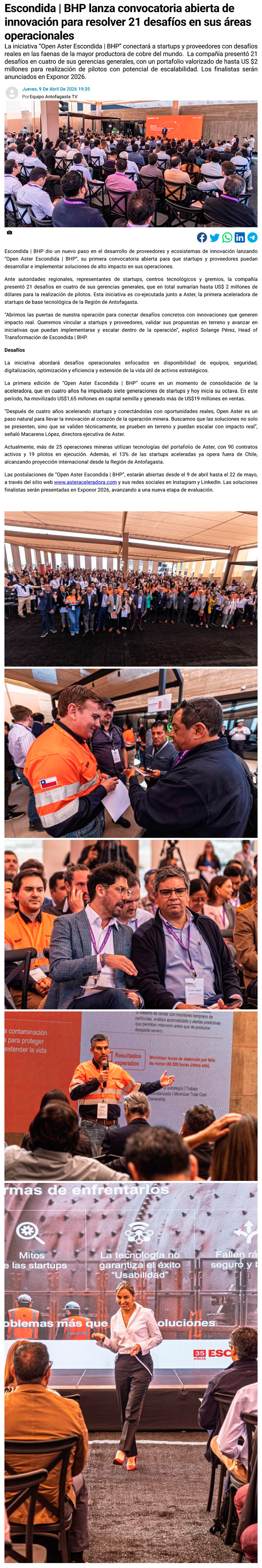 Escondida | BHP lanza convocatoria abierta de innovación para resolver 21 desafíos en sus áreas operacionales - (timeline)