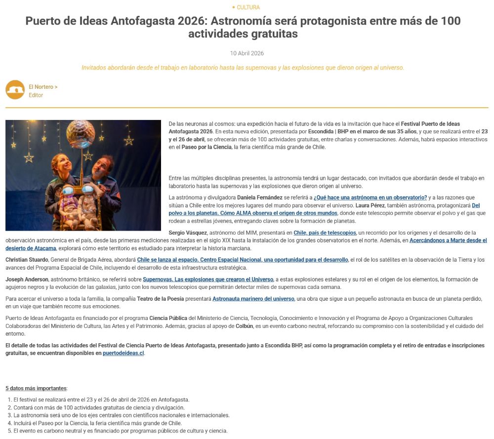 Desde el norte de Chile al cosmos: la astronomía protagoniza Puerto de Ideas Antofagasta 2026 - (cpcomunicaciones.cl)