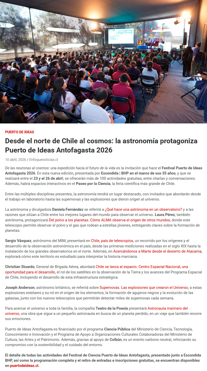 Desde el norte de Chile al cosmos: la astronomía protagoniza Puerto de Ideas Antofagasta 2026 - (cpcomunicaciones.cl)