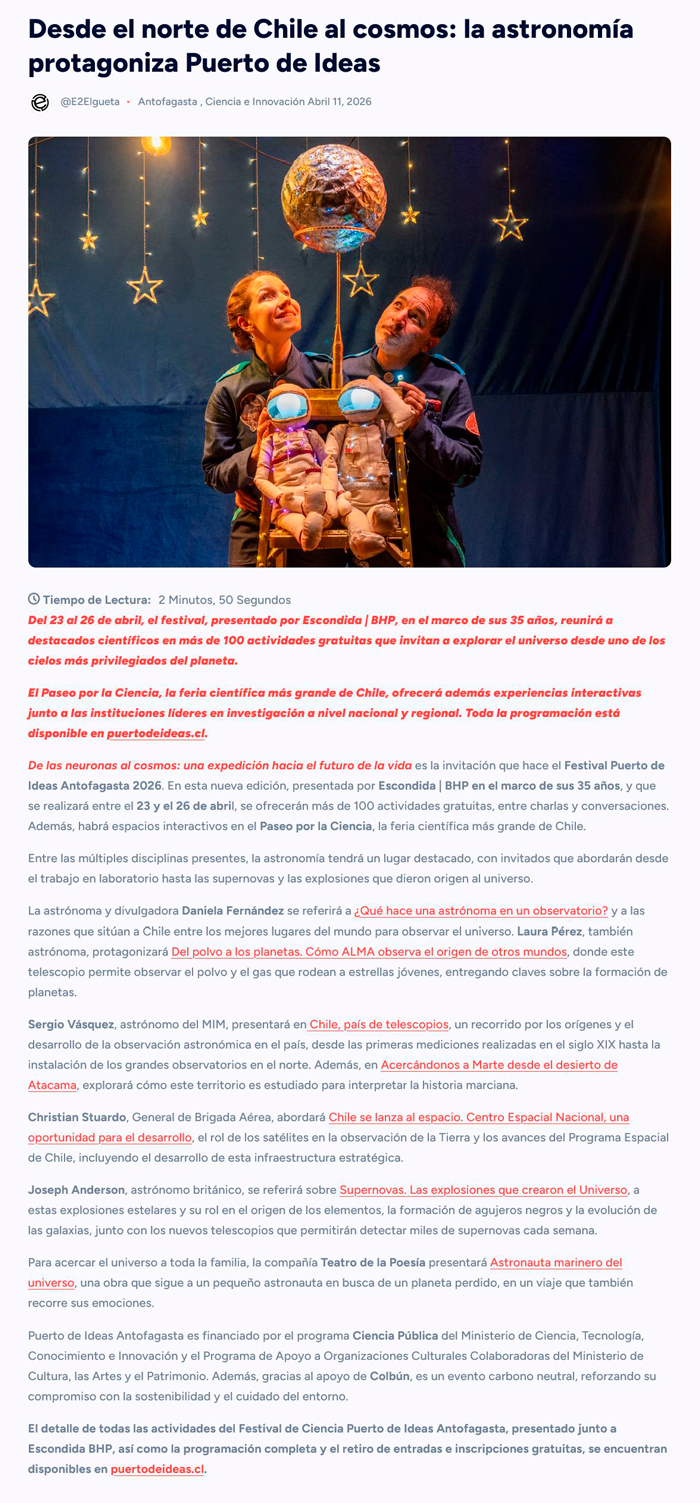 Desde el norte de Chile al cosmos: la astronomía protagoniza Puerto de Ideas Antofagasta 2026 - (cpcomunicaciones.cl)