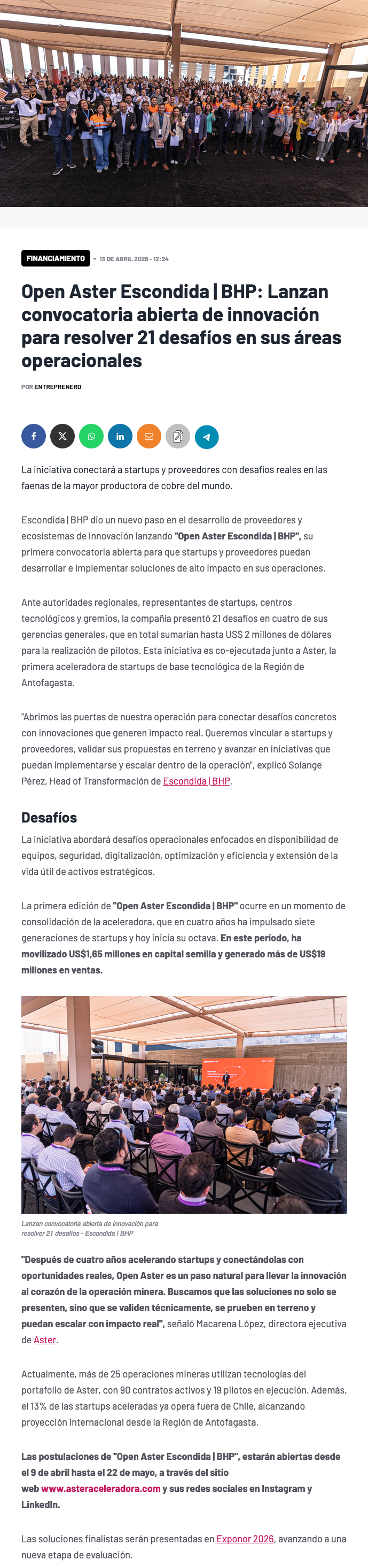Escondida | BHP lanza convocatoria abierta para resolver 21 desafíos operacionales con startups y proveedores - (mineriayfuturo.cl)