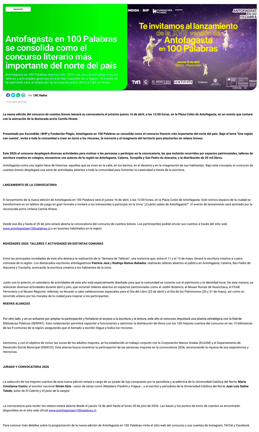 Antofagasta en 100 Palabras se consolida como el concurso literario más importante del norte del país - (fmquiero.cl)