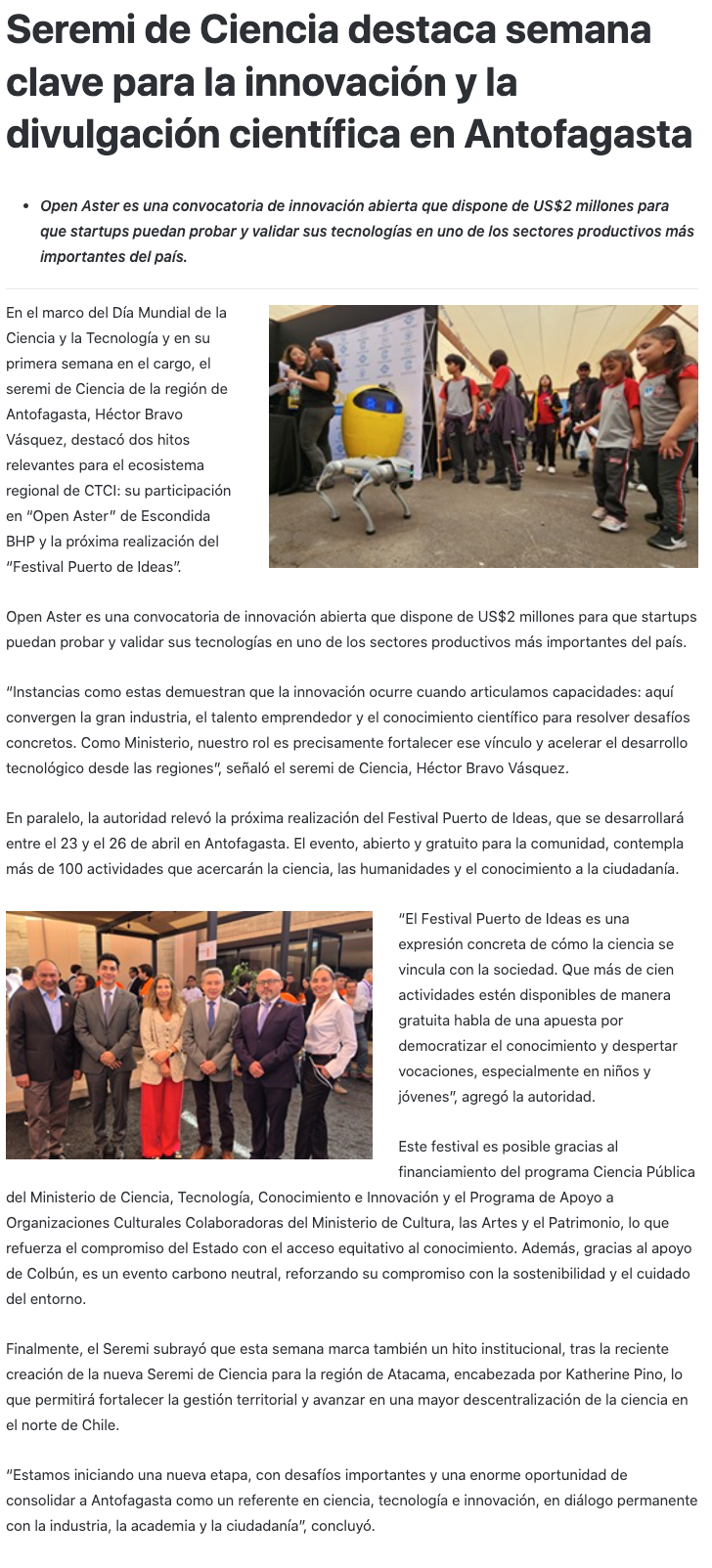 Seremi de Ciencia destaca semana clave para la innovación y la divulgación científica en Antofagasta - (g5noticias.cl)