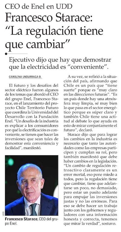 Francesco Starace, CEO de Enel reflexiona sobre Chile: “Es un país que cambia mucho y sigue cambiando” - (Diario Financiero)