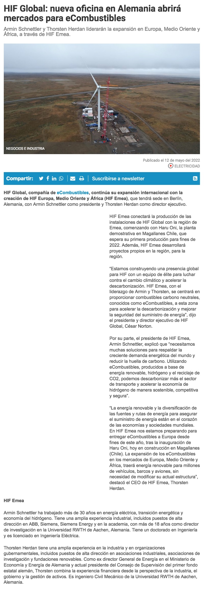 HIF Global: nueva oficina en Alemania abrirá mercados para eCombustibles - (electromov.cl)