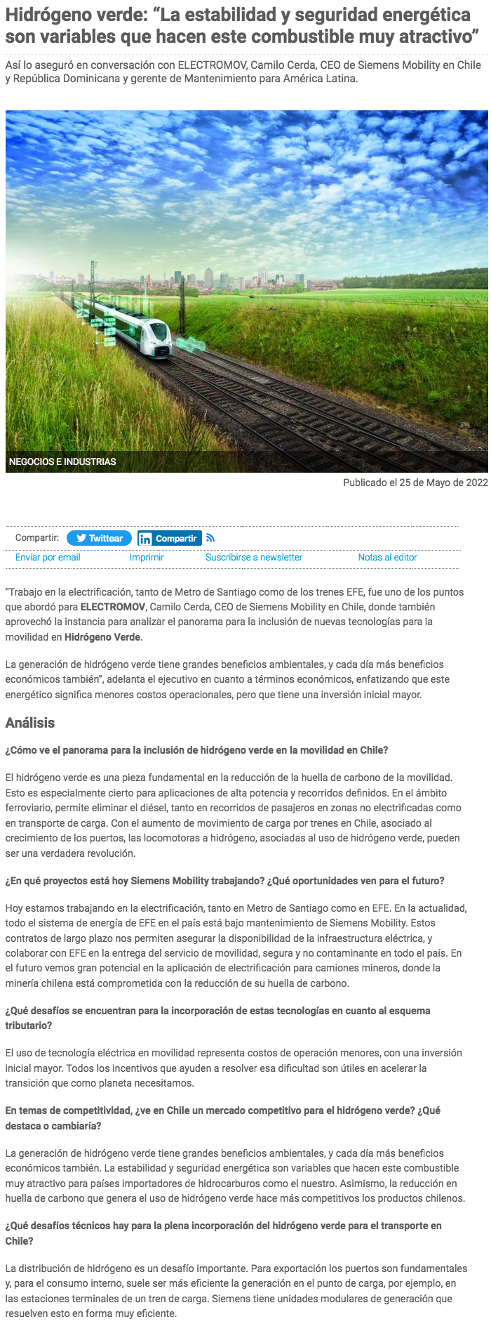 Hidrógeno verde: “La estabilidad y seguridad energética son variables que hacen este combustible muy atractivo” - (revistaei.cl)