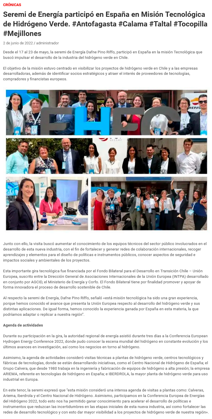 Seremi de Energía participó en España en Misión Tecnológica de Hidrógeno Verde - (norteyenergia.cl)