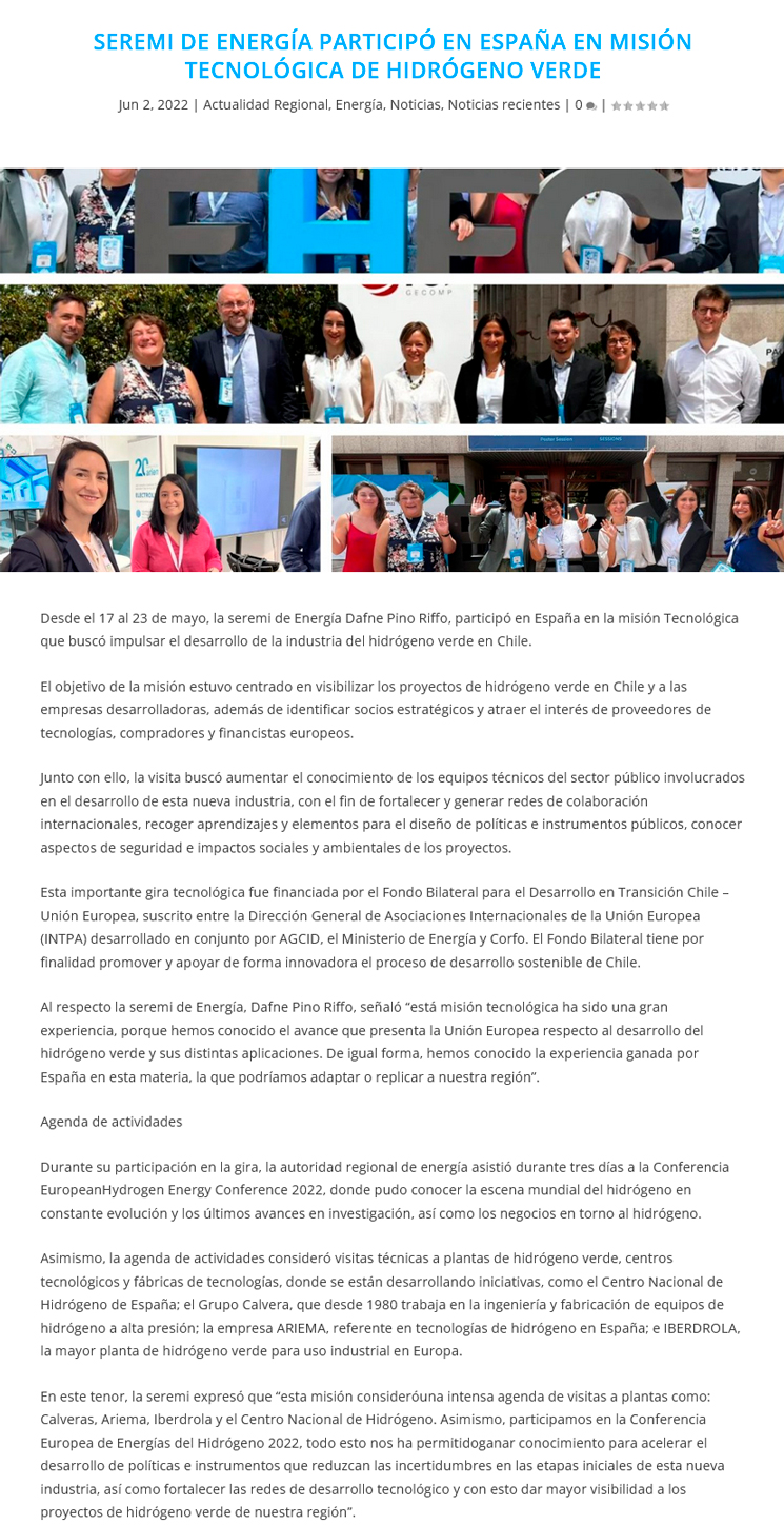 Seremi de Energía participó en España en Misión Tecnológica de Hidrógeno Verde - (diarioangamos)