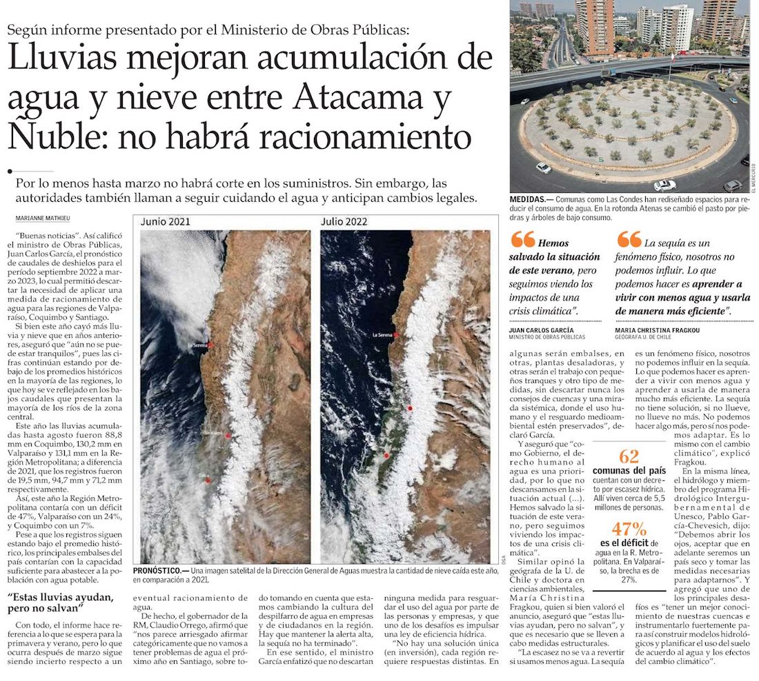 MOP descarta racionamiento de agua en Santiago, Valparaíso y Coquimbo - (Diario Financiero)