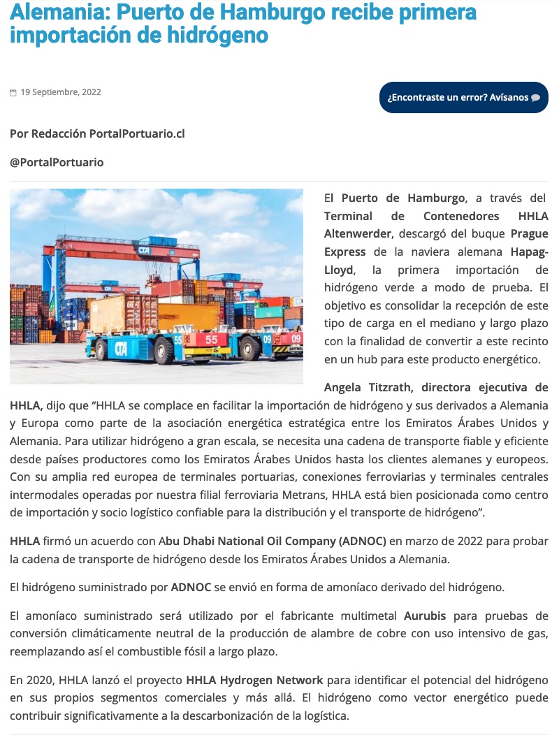 Hamburgo recibe el primer cargamento de hidrógeno de los Emiratos Árabes Unidos - (worldenergytrade.com)
