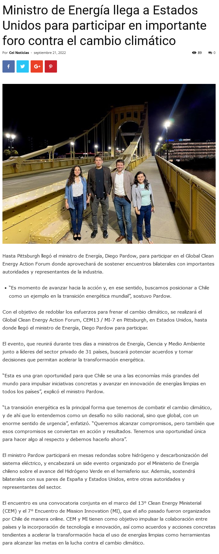 Ministro Pardow llegó a EE.UU para participar en importante foro de energía y acción contra el cambio climático - (h2news.cl)