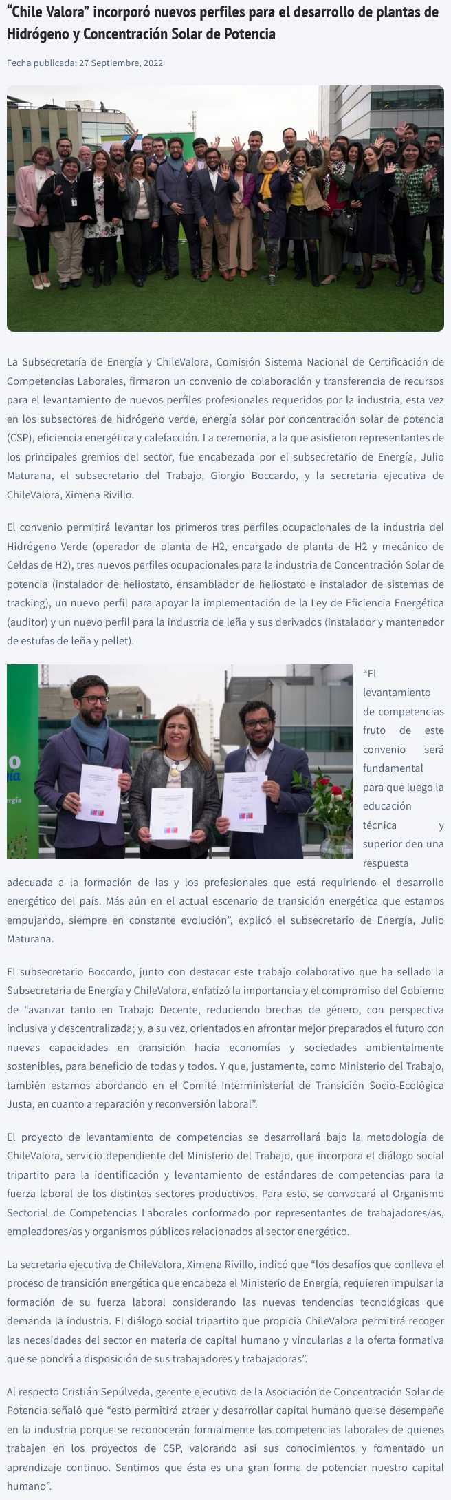 Especialistas en hidrógeno verde y concentración solar de potencia: los nuevos perfiles para la transición energética - (radiopresidenteibanez.cl)