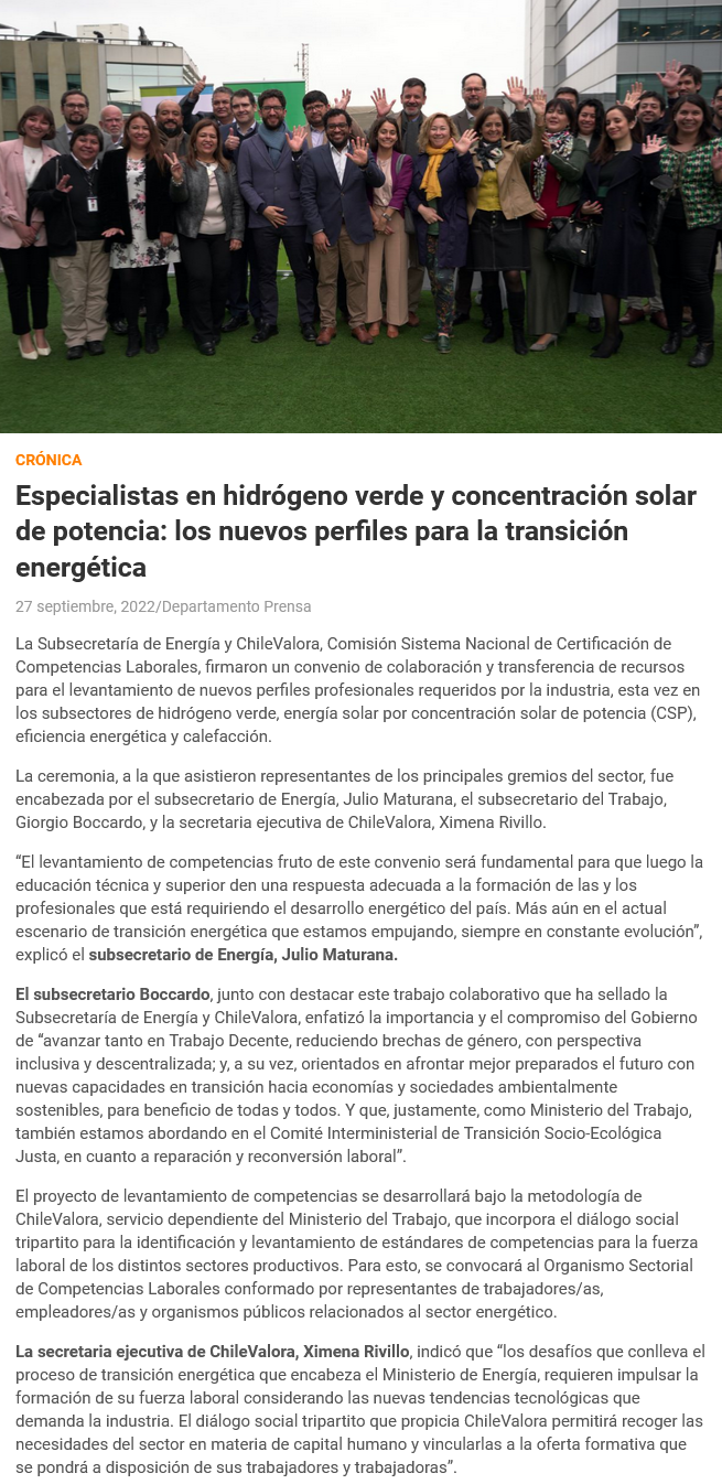 “Chile Valora” incorporó nuevos perfiles para el desarrollo de plantas de Hidrógeno y Concentración Solar de Potencia - (h2news.cl)