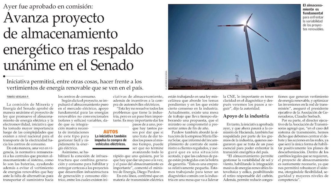 Comisión de Energía del Senado aprueba proyecto de almacenamiento considerado clave para la descarbonización de la matriz eléctrica - (Pulso Online)