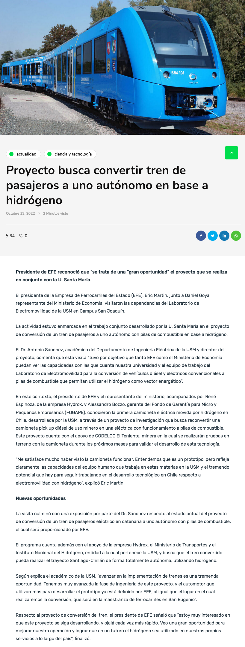 País: Proyecto busca convertir tren de pasajeros a uno autónomo en base a hidrógeno - (radioallen.cl)