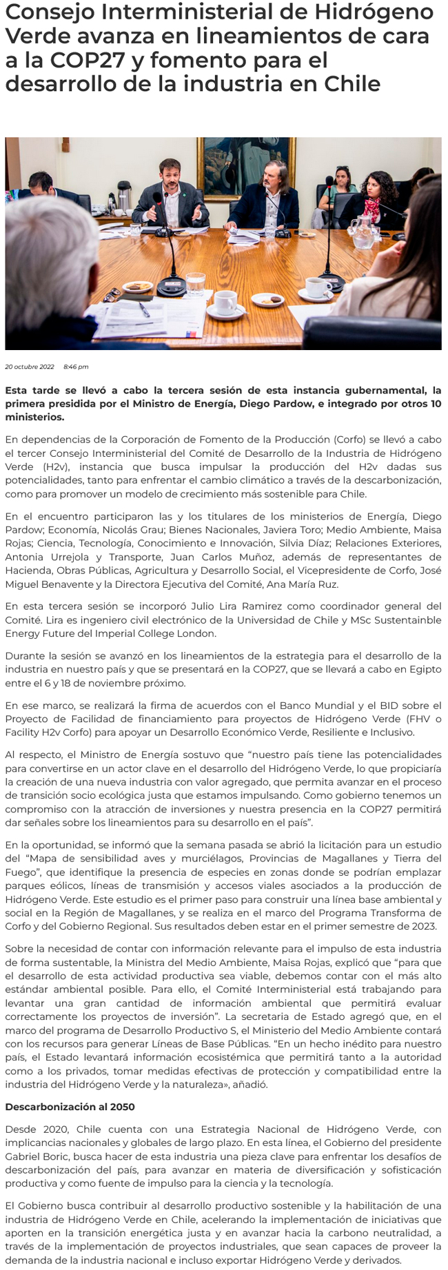 Consejo Interministerial de Hidrógeno Verde avanza en lineamientos para desarrollo de proyectos - (ovejeronoticias.cl)