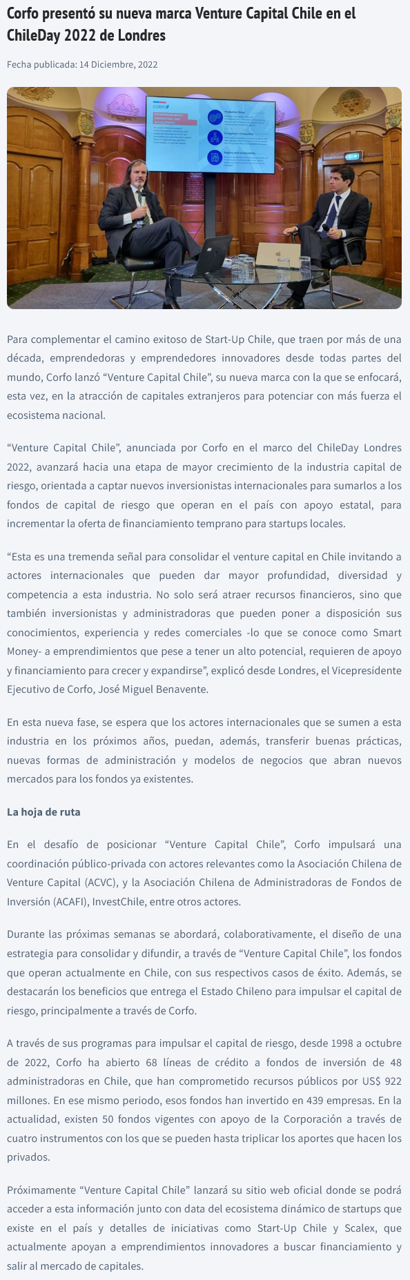 Corfo lanza primer fondo de hidrógeno verde y anuncia marca Venture Capital Chile en Londres - (Diario Financiero)