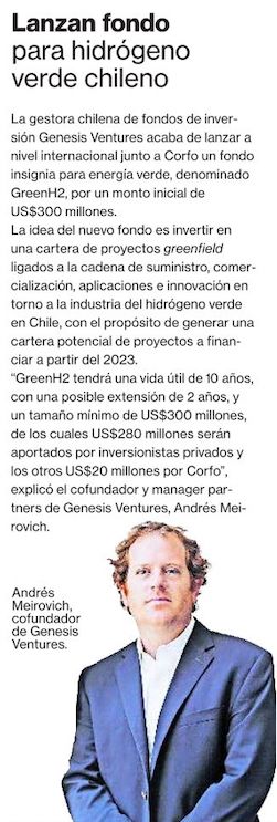 Corfo lanza primer fondo de hidrógeno verde y anuncia marca Venture Capital Chile en Londres - (Diario Financiero)