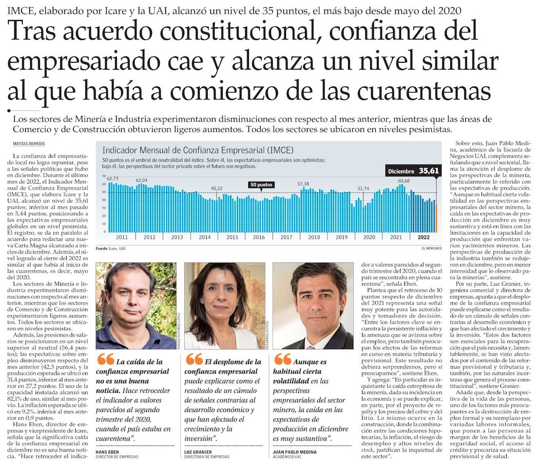 Pese a acuerdo constitucional, incertidumbre económica volvió a subir al cierre del 2022 - (El Mercurio de Santiago)
