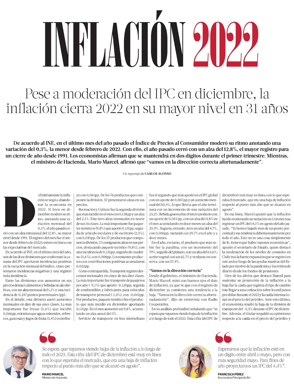 Inflación llega a 12,8% en 2022 y analistas delinean retos para contener las alzas este año - (El Mercurio de Santiago)