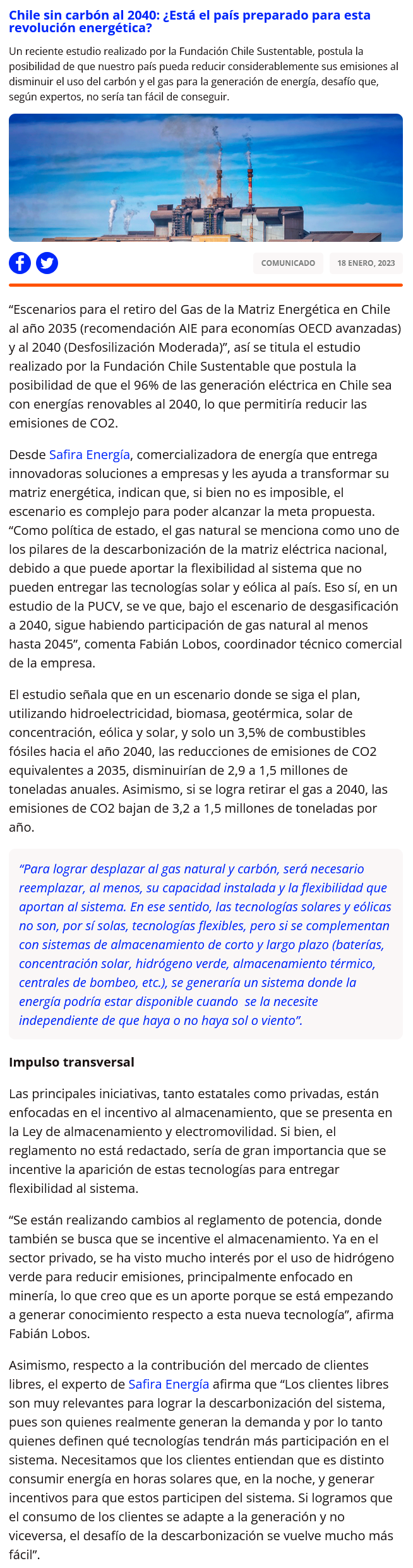 Chile sin carbón al 2040: ¿está el país preparado para esta revolución energética? - (presslatam.cl)