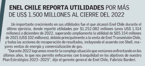 Enel Chile reporta fuerte alza en sus números tras venta de filial de transmisión - (Diario Financiero)