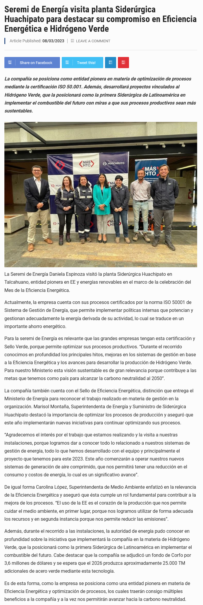 Seremi de Energía visita planta Siderúrgica Huachipato y destaca compromiso en EE e hidrógeno verde - (revistaei.cl)