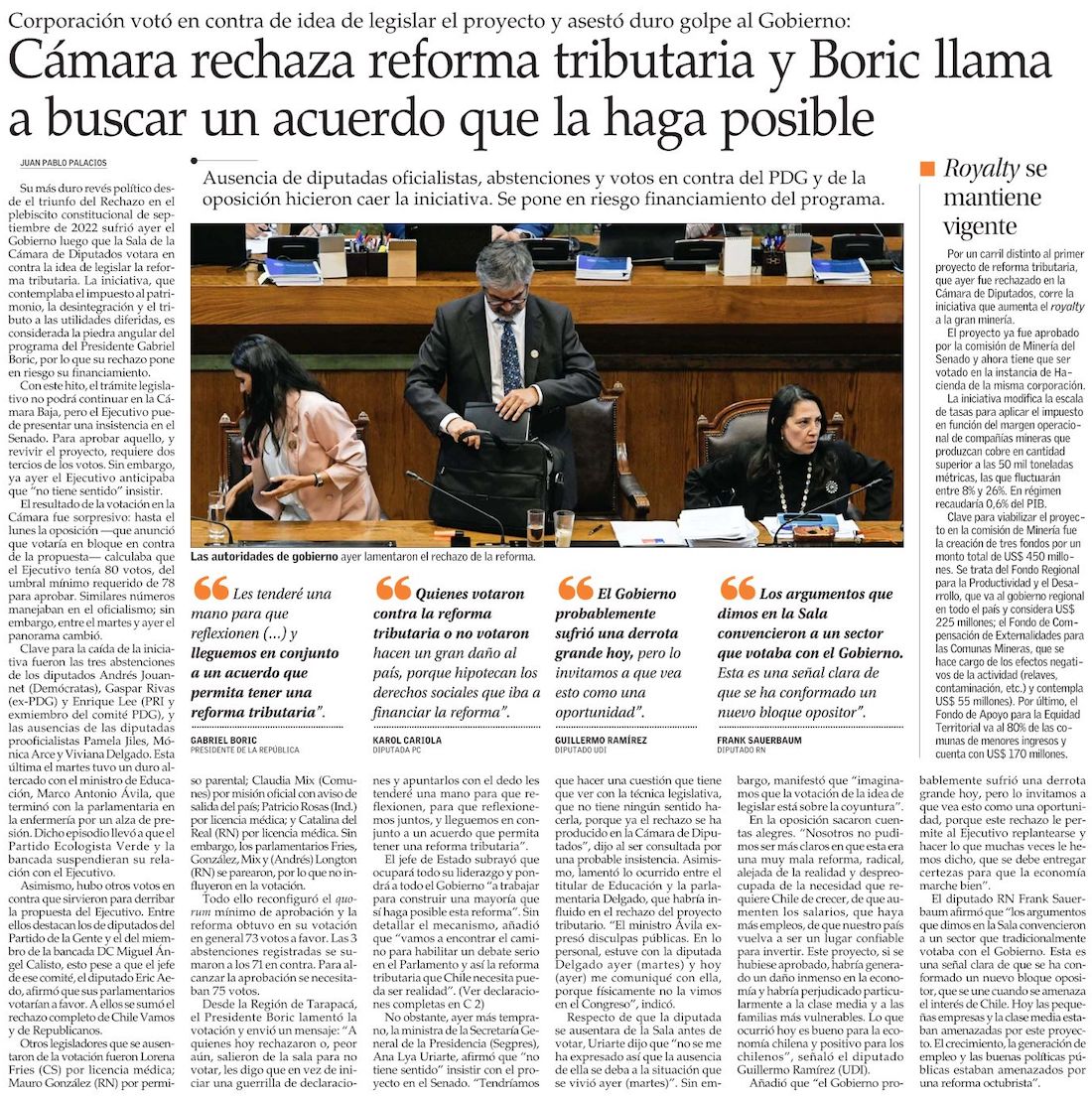 Cámara de Diputados propina la más dura derrota al programa de gobierno y rechaza la reforma tributaria - (Pulso)