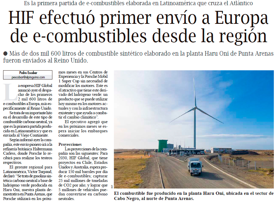 HIF Global envía los primeros litros de eCombustibles al Reino Unido - (h2news.cl)