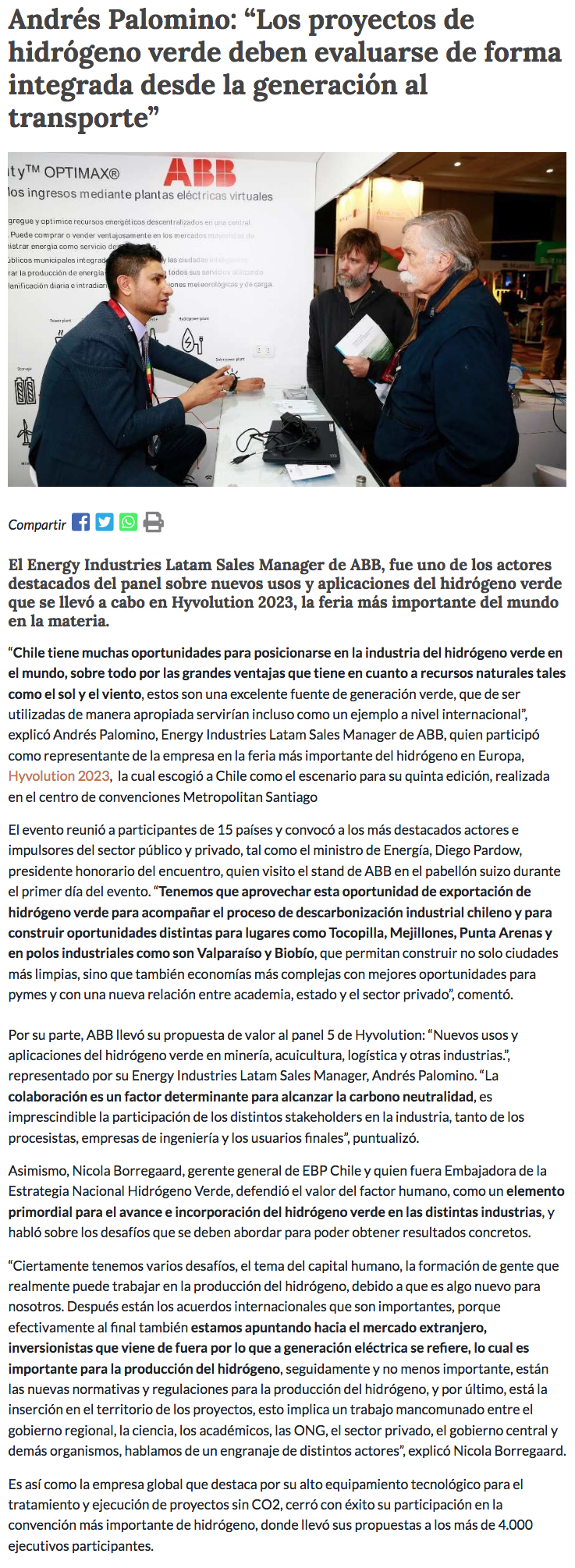 Andrés Palomino de ABB: “Los proyectos de hidrógeno verde deben evaluarse de forma integrada desde la generación al transporte” - (portalinnova.cl)