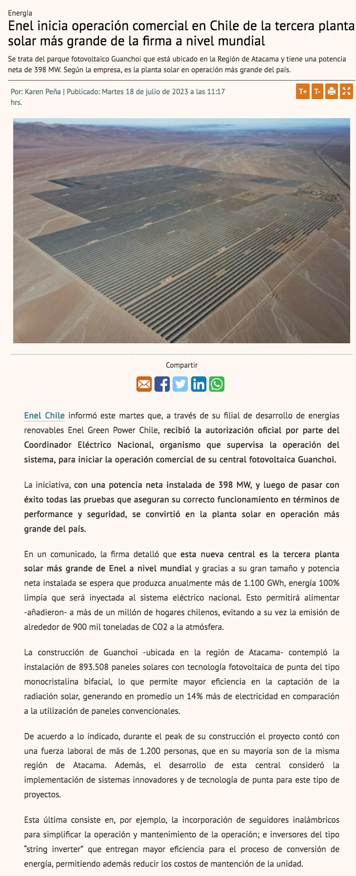Guanchoi: la planta solar más grande de Chile inicia sus operaciones - (El Mostrador)