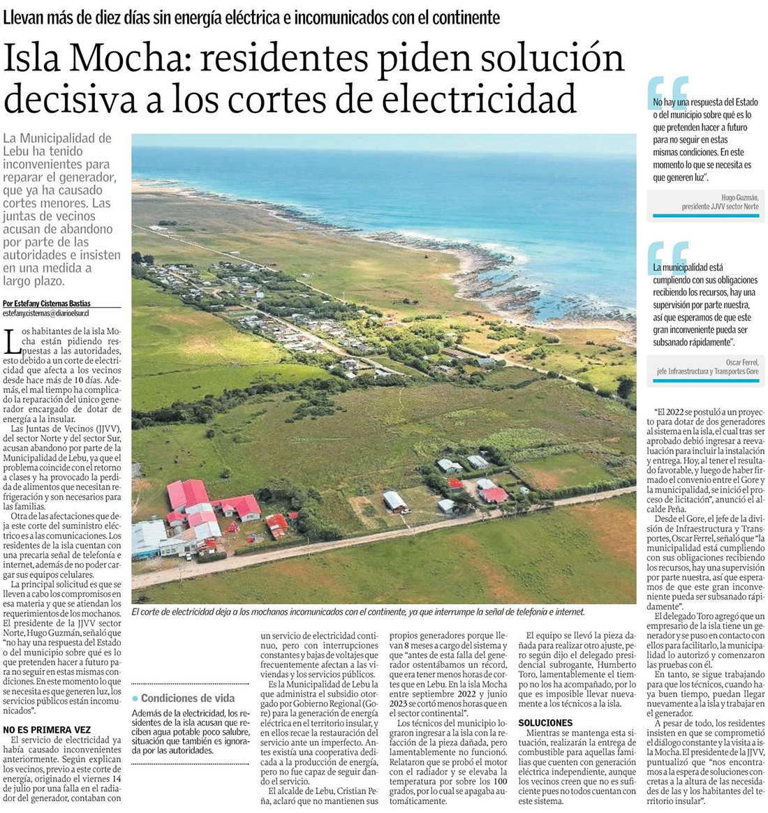 Isla Mocha suma 10 días a oscuras por falla de generador eléctrico: residentes exigen solución urgente - (biobiochile online)