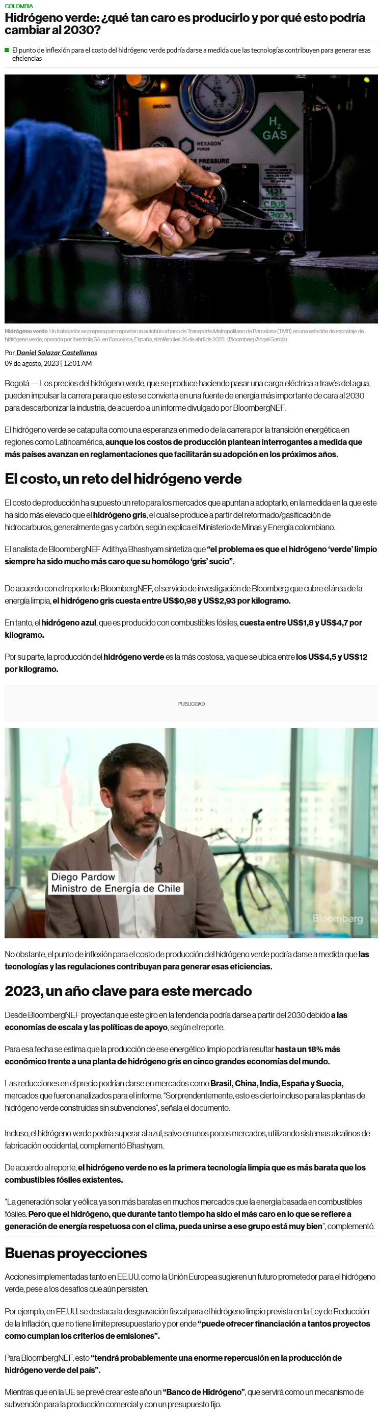 Hidrógeno verde: ¿qué tan caro es producirlo y por qué esto podría cambiar al 2030? - (bloomberglinea.com)