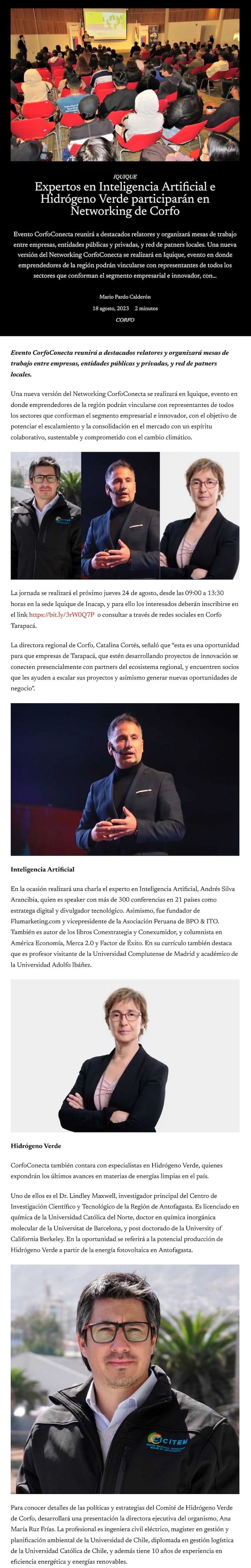 Networking de Corfo traerá a expertos en inteligencia artificial e hidrógeno verde - (El Longino de Iquique)