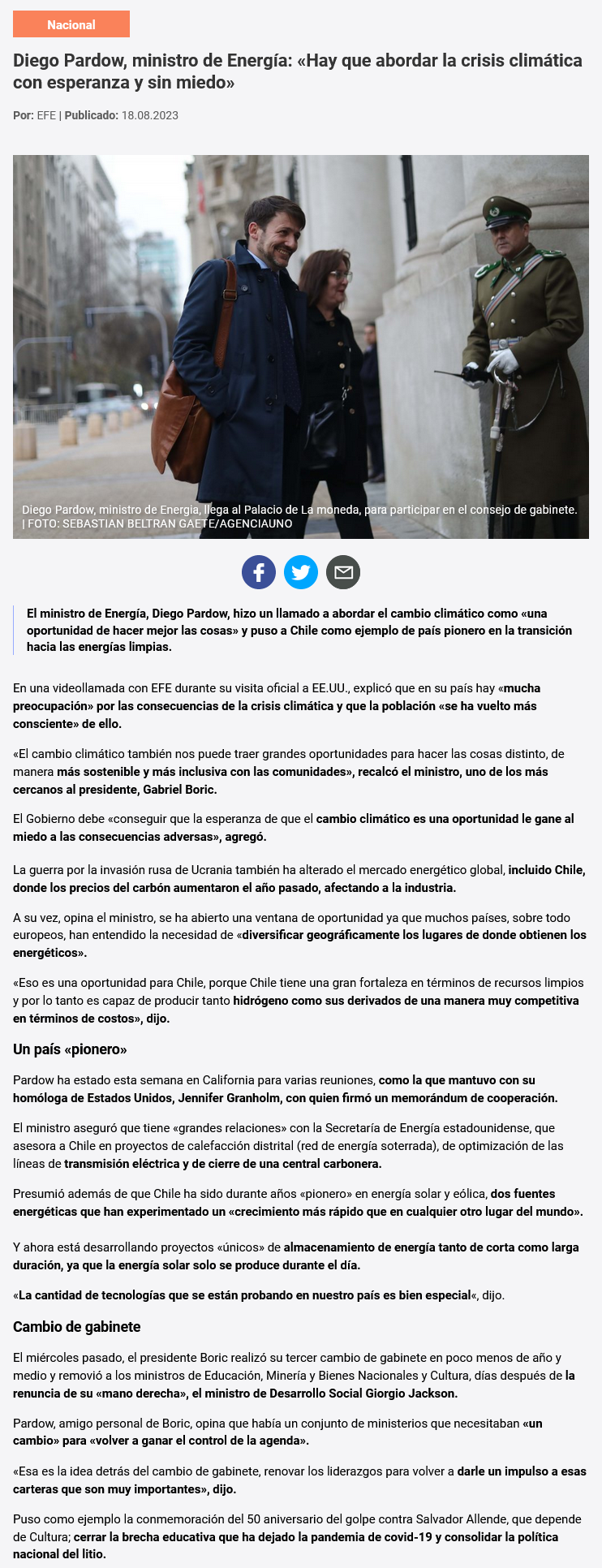 Ministro de Energía: Hay que abordar la crisis climática con esperanza y sin miedo - (cooperativa online)