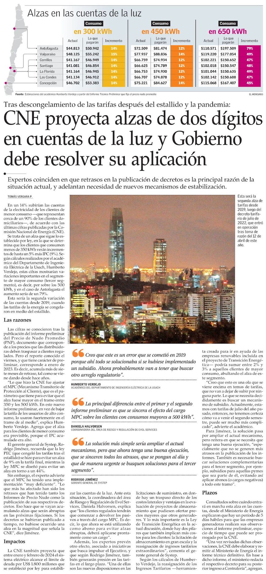 Nuevo informe preliminar de la CNE profundizaría alzas en las cuentas de la luz en clientes de mayor consumo - (Diario Financiero)
