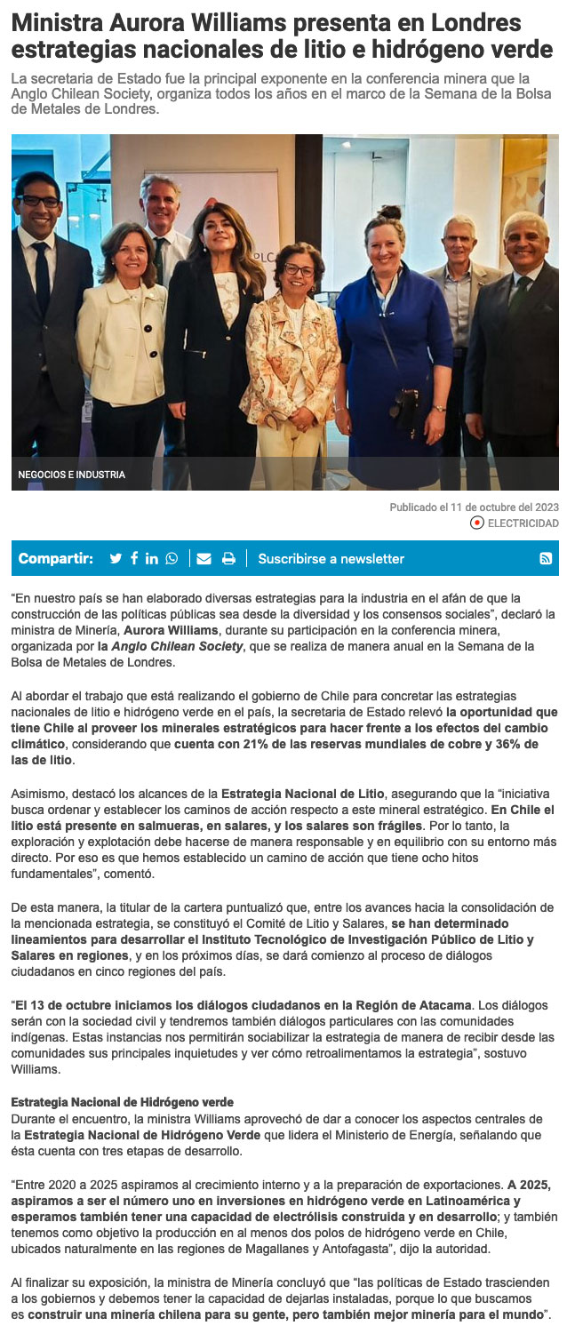 Ministra Aurora Williams presenta en Londres estrategias nacionales de litio e hidrógeno verde - (tierramarillano.cl)