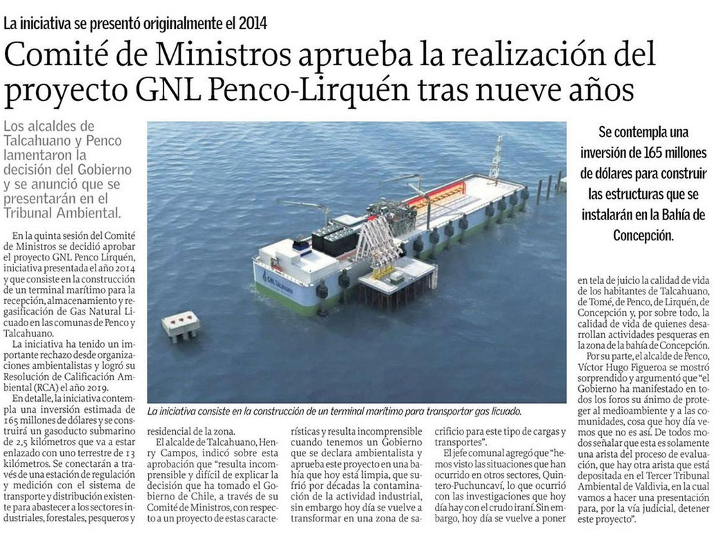 Comité de Ministros aprueba proyecto terminal marítimo de GNL Penco-Lirquén - (Pulso)