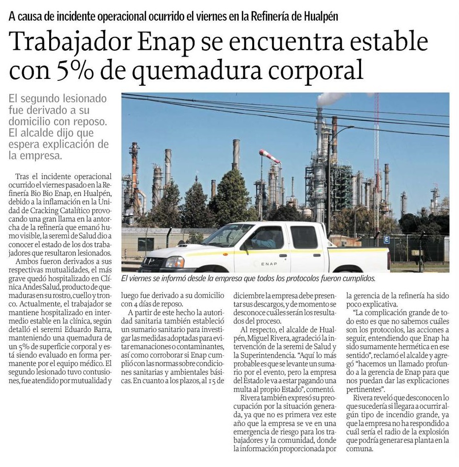 Incidente en ENAP: un trabajador hospitalizado y otro dado de alta - (Diario Concepción)